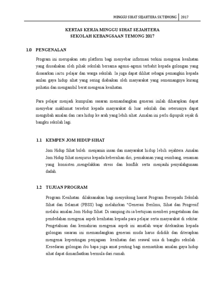 Kertas Kerja Program Kesihatan Sekolah Rendah Pdf